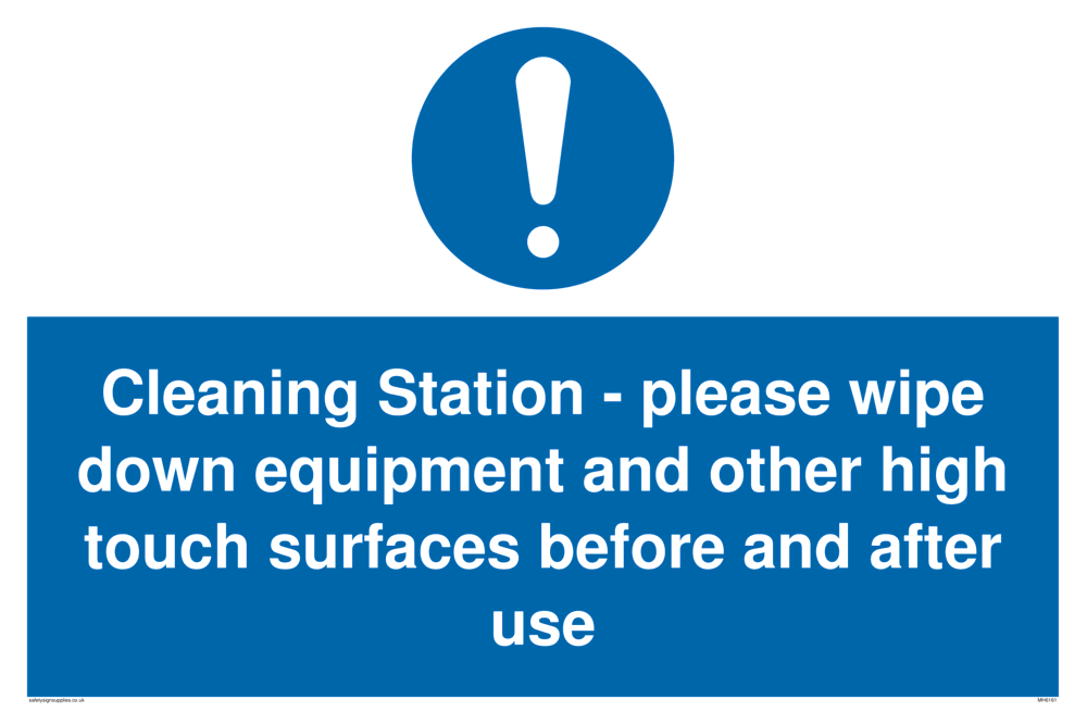 This sign contains a general Mandatory Exclamation Symbol - exclamation mark in white on blue circle background.