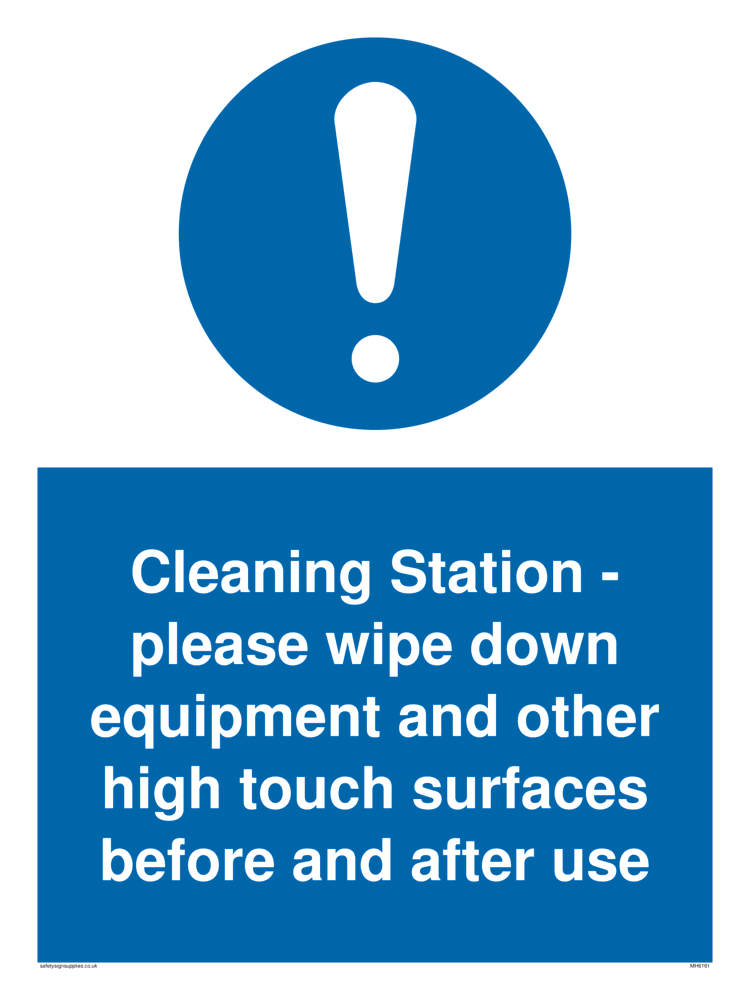 This sign contains a general Mandatory Exclamation Symbol - exclamation mark in white on blue circle background.