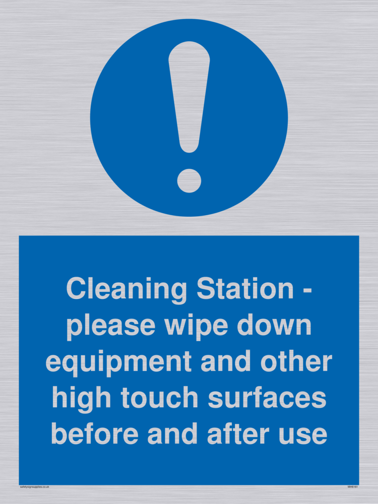 Sign Text: Cleaning Station - please wipe down equipment and other high touch surfaces before and after use
