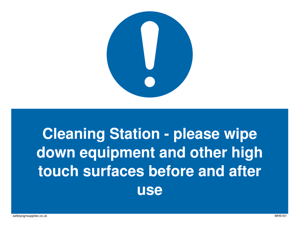 This sign contains a general Mandatory Exclamation Symbol - exclamation mark in white on blue circle background.
