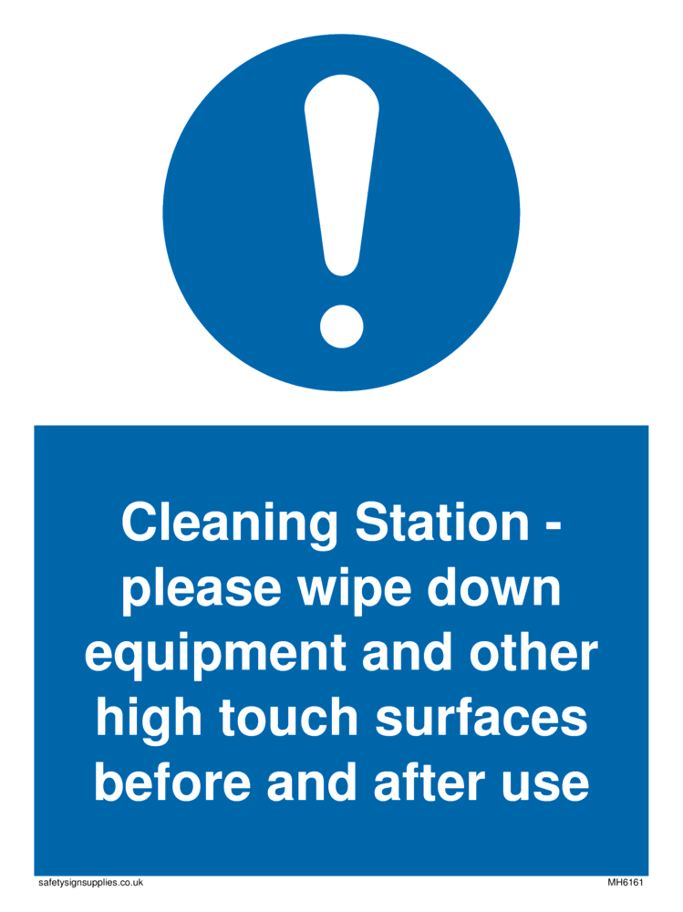 This sign contains a general Mandatory Exclamation Symbol - exclamation mark in white on blue circle background.