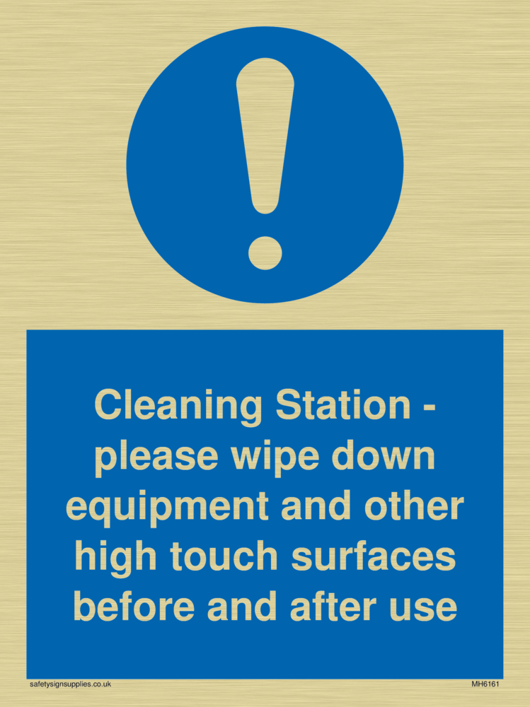 Sign Text: Cleaning Station - please wipe down equipment and other high touch surfaces before and after use