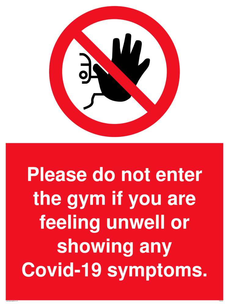 Sign Text: Please do not enter the gym if you are feeling unwell or showing any Covid-19 symptoms.