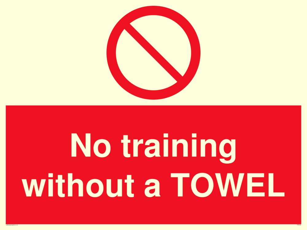 Sign Text: No training without a TOWEL
