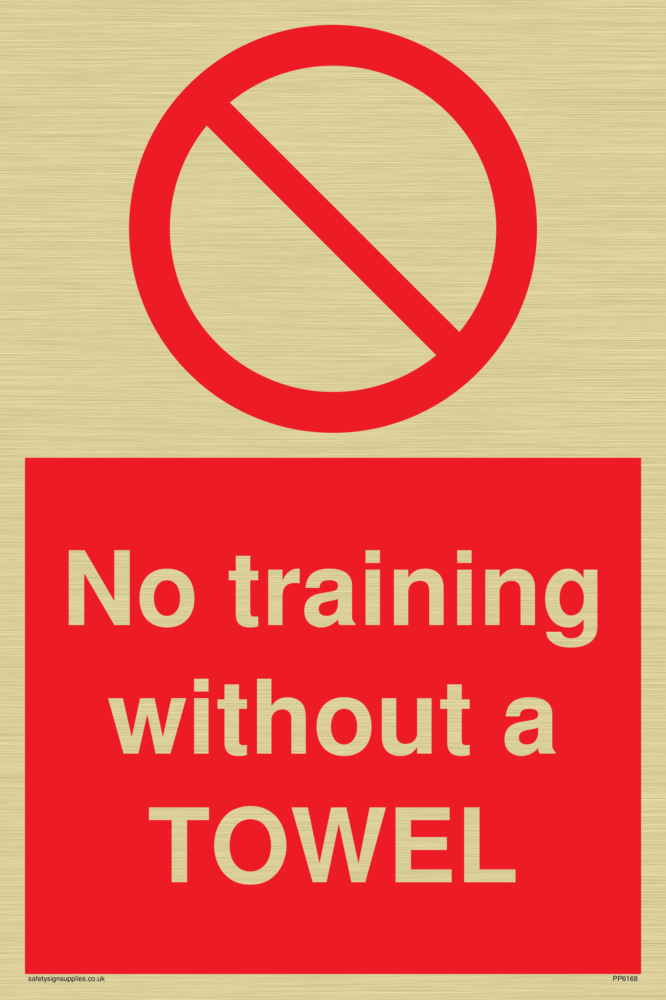 Sign Text: No training without a TOWEL
