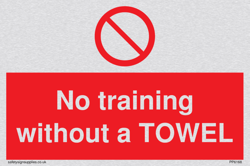 Sign Text: No training without a TOWEL