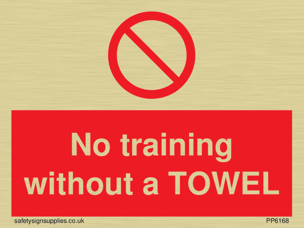 Sign Text: No training without a TOWEL