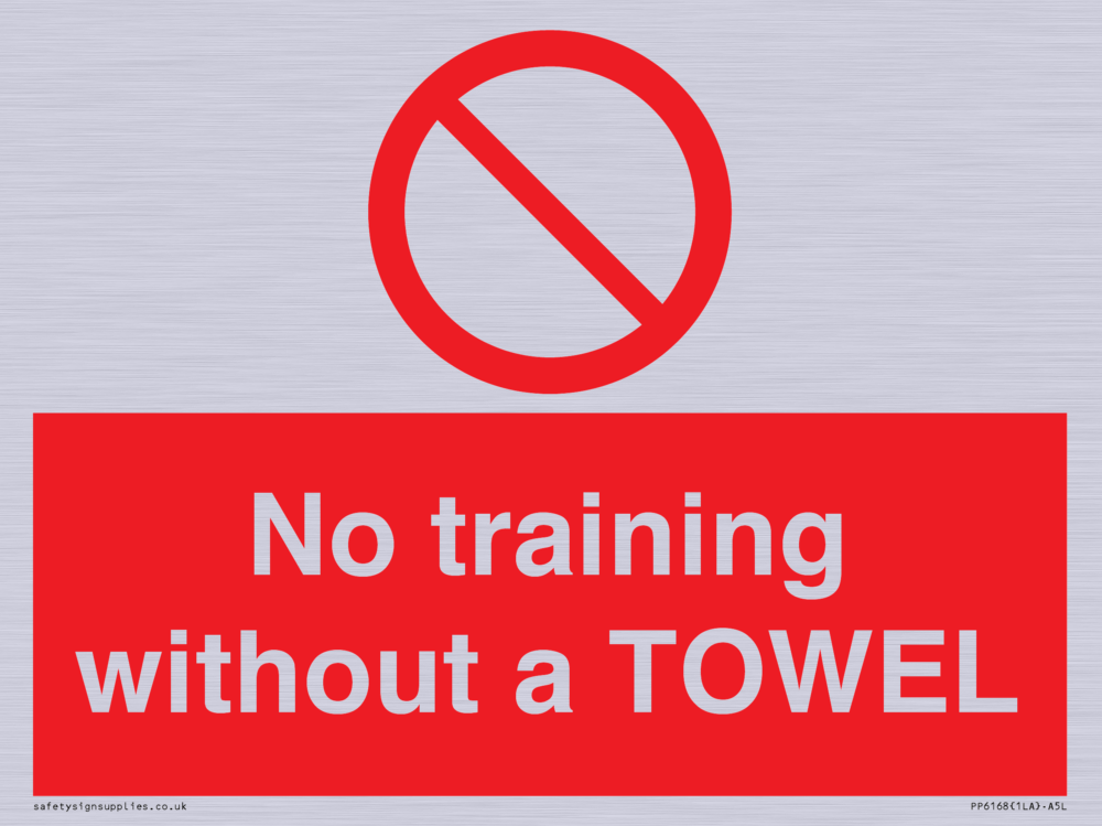 Sign Text: No training without a TOWEL