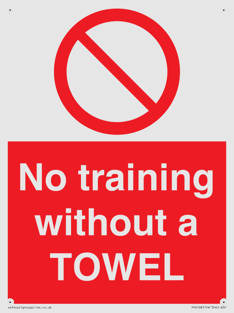 Sign Text: No training without a TOWEL