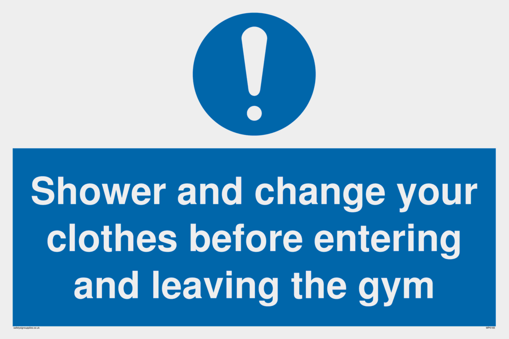 This sign contains a general Mandatory Exclamation Symbol - exclamation mark in white on blue circle background.