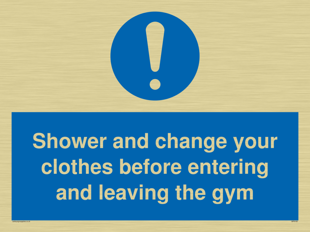 Sign Text: Shower and change your clothes before entering and leaving the gym
