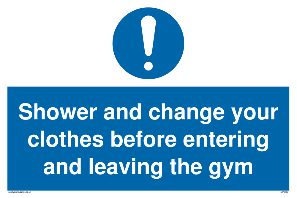 This sign contains a general Mandatory Exclamation Symbol - exclamation mark in white on blue circle background.