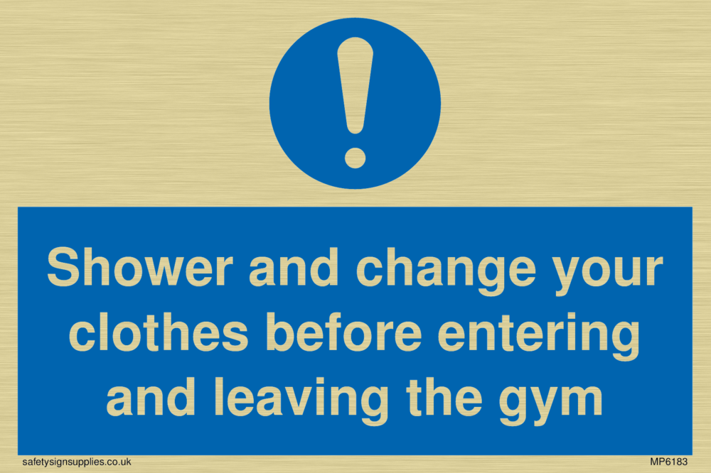 Sign Text: Shower and change your clothes before entering and leaving the gym