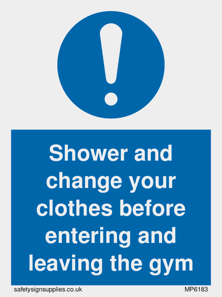 This sign contains a general Mandatory Exclamation Symbol - exclamation mark in white on blue circle background.