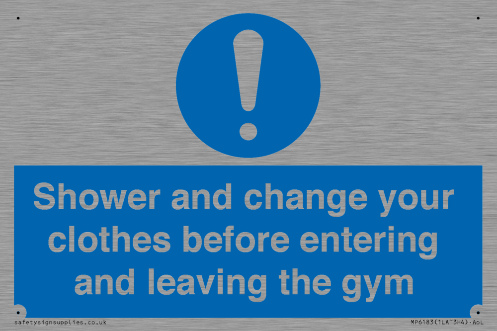Sign Text: Shower and change your clothes before entering and leaving the gym