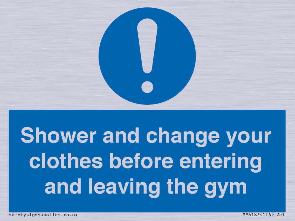 Sign Text: Shower and change your clothes before entering and leaving the gym