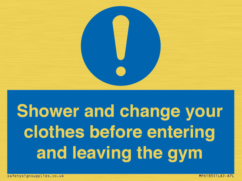 Sign Text: Shower and change your clothes before entering and leaving the gym