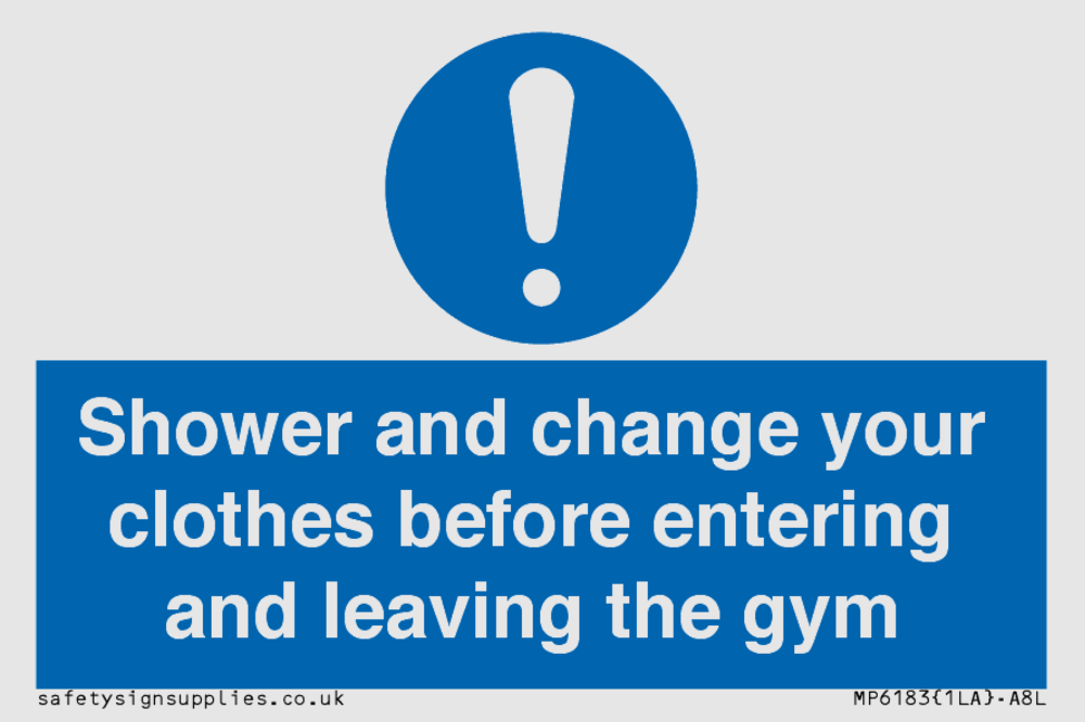 Sign Text: Shower and change your clothes before entering and leaving the gym