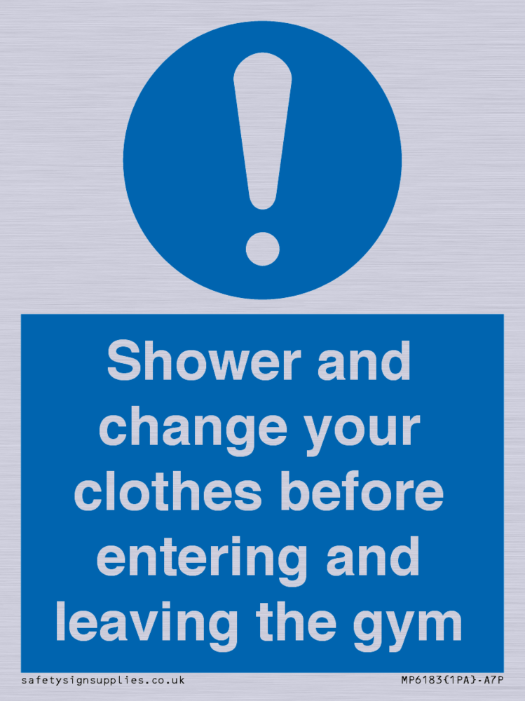 Sign Text: Shower and change your clothes before entering and leaving the gym