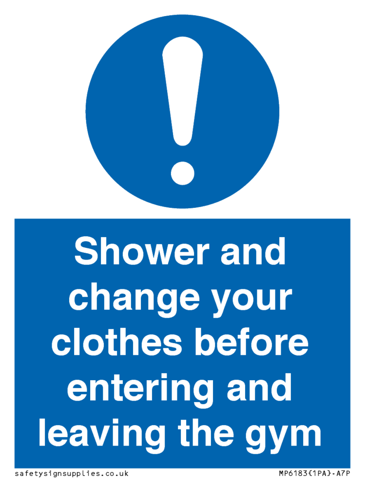 Sign Text: Shower and change your clothes before entering and leaving the gym