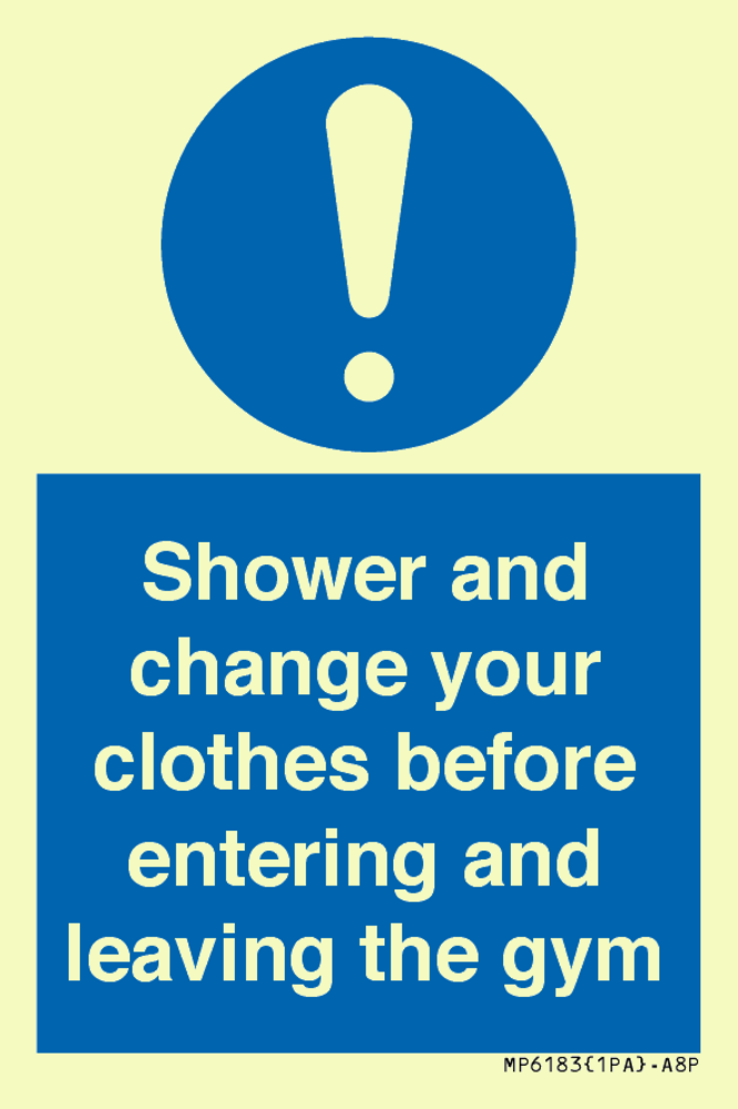 Sign Text: Shower and change your clothes before entering and leaving the gym