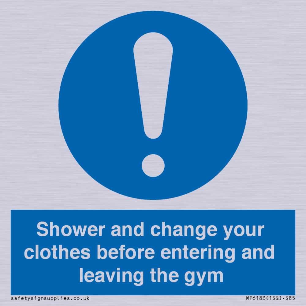 Sign Text: Shower and change your clothes before entering and leaving the gym