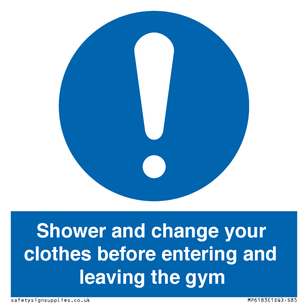 Sign Text: Shower and change your clothes before entering and leaving the gym