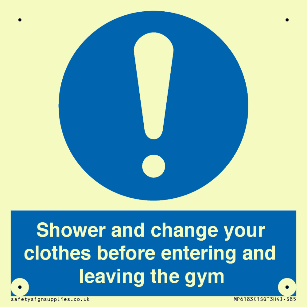 Sign Text: Shower and change your clothes before entering and leaving the gym