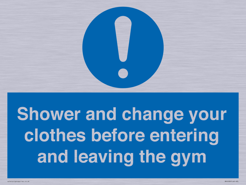 Sign Text: Shower and change your clothes before entering and leaving the gym
