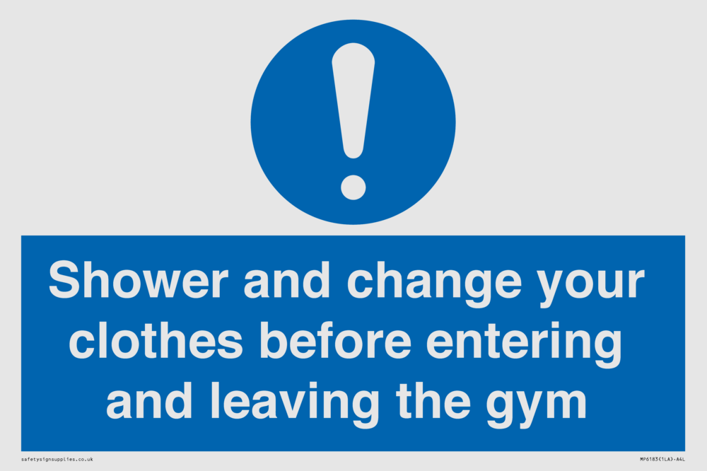 Sign Text: Shower and change your clothes before entering and leaving the gym