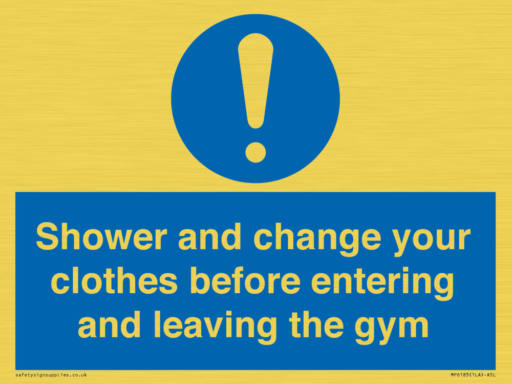 Sign Text: Shower and change your clothes before entering and leaving the gym