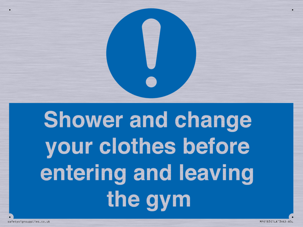 Sign Text: Shower and change your clothes before entering and leaving the gym