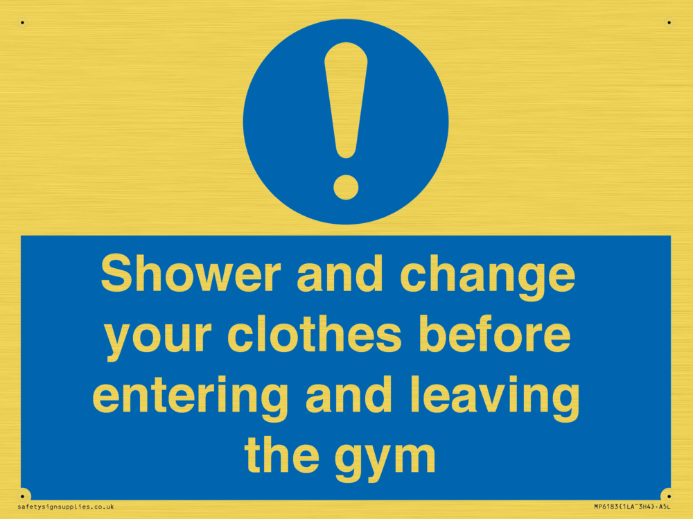 Sign Text: Shower and change your clothes before entering and leaving the gym