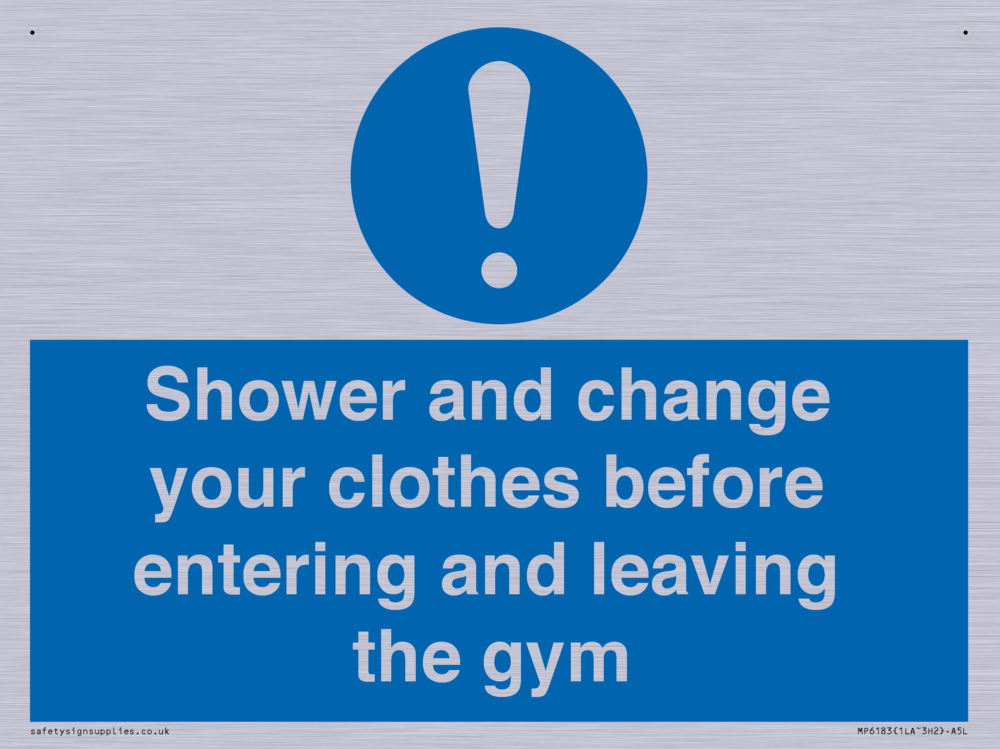 Sign Text: Shower and change your clothes before entering and leaving the gym