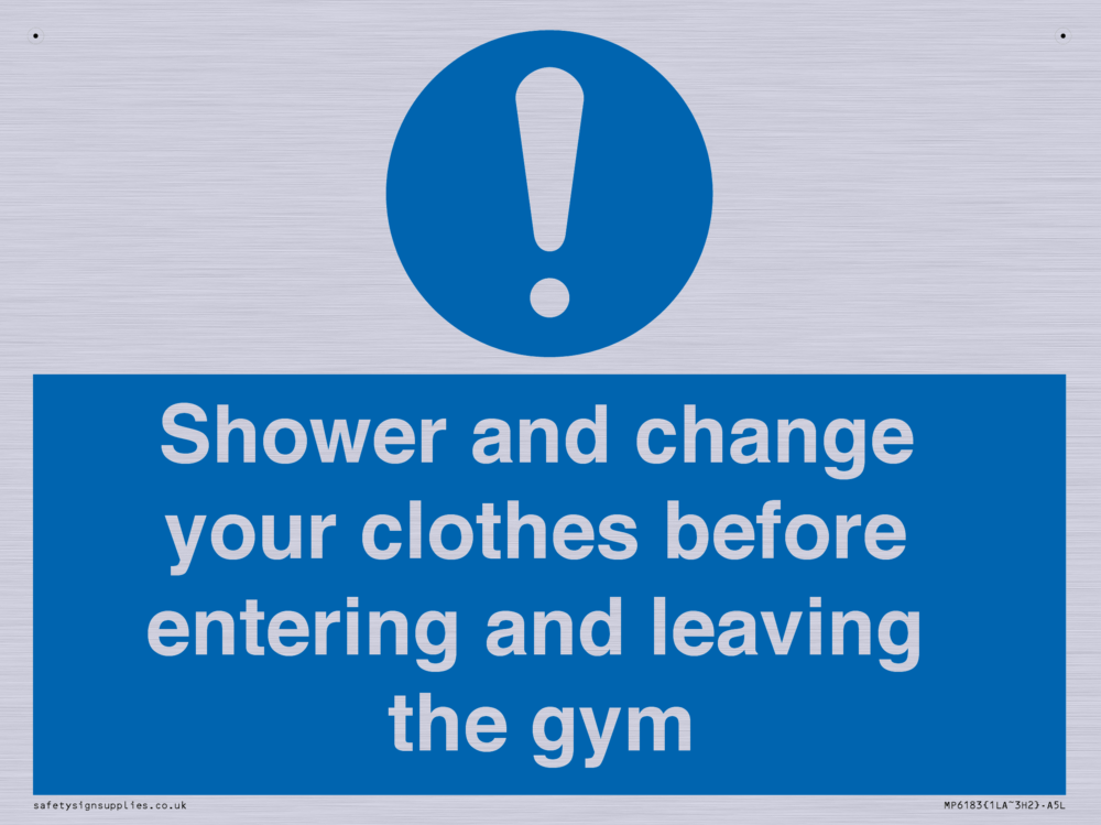 Sign Text: Shower and change your clothes before entering and leaving the gym
