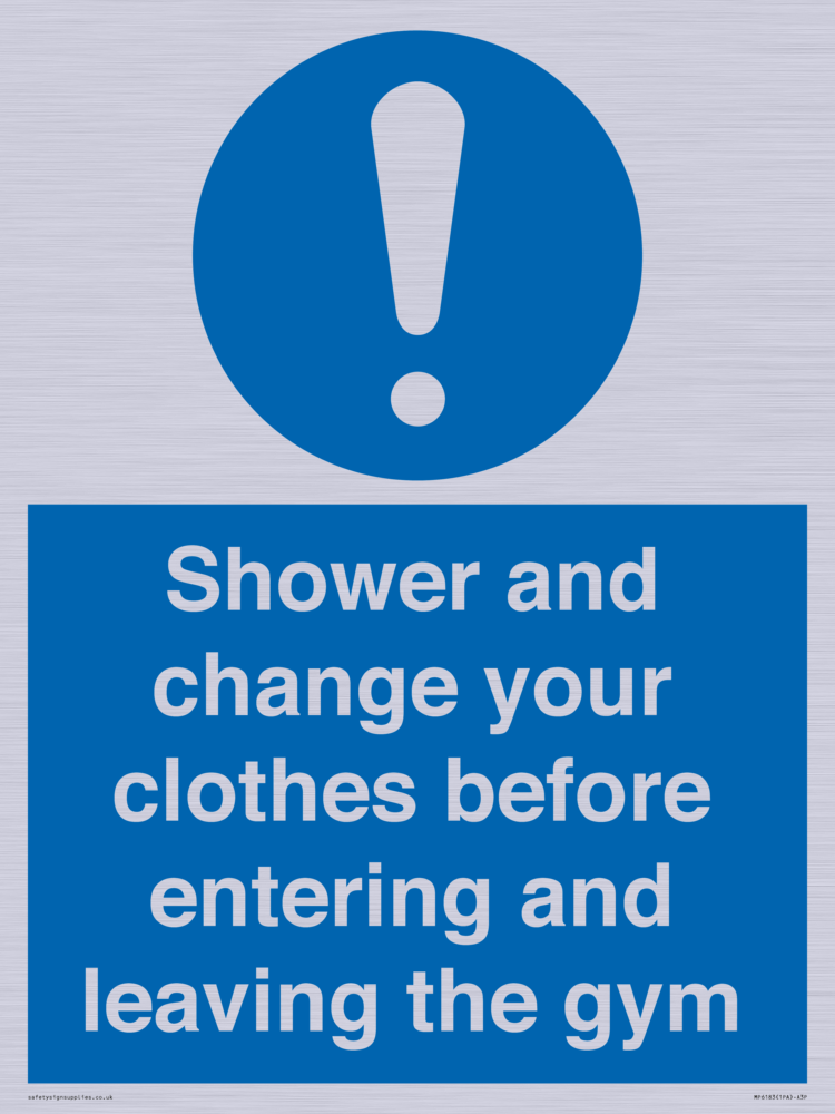 Sign Text: Shower and change your clothes before entering and leaving the gym