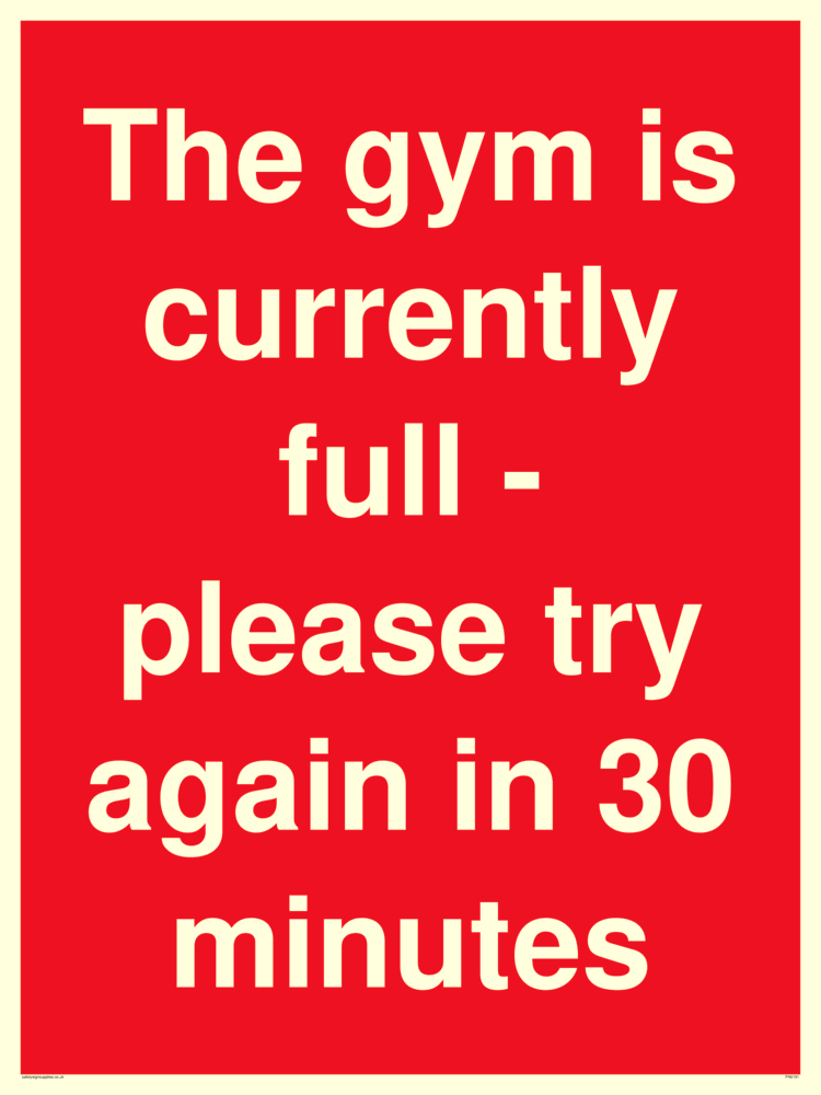 Sign Text: The gym is currently full - please try again in 30 minutes