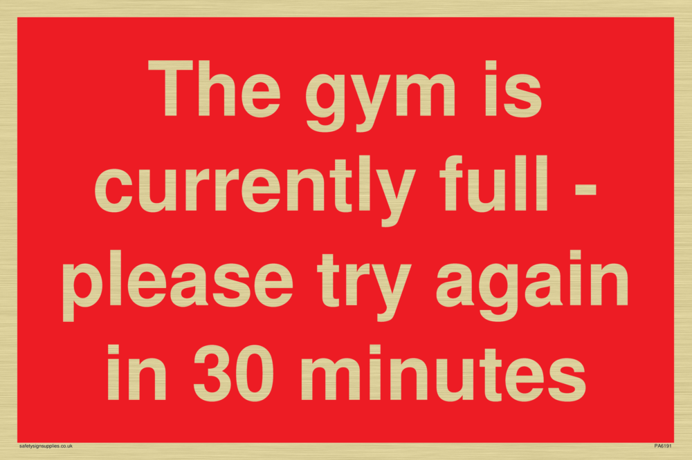 Sign Text: The gym is currently full - please try again in 30 minutes