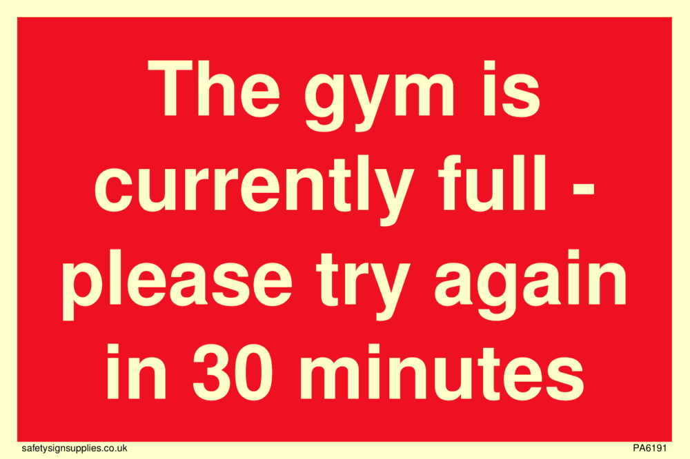 Sign Text: The gym is currently full - please try again in 30 minutes