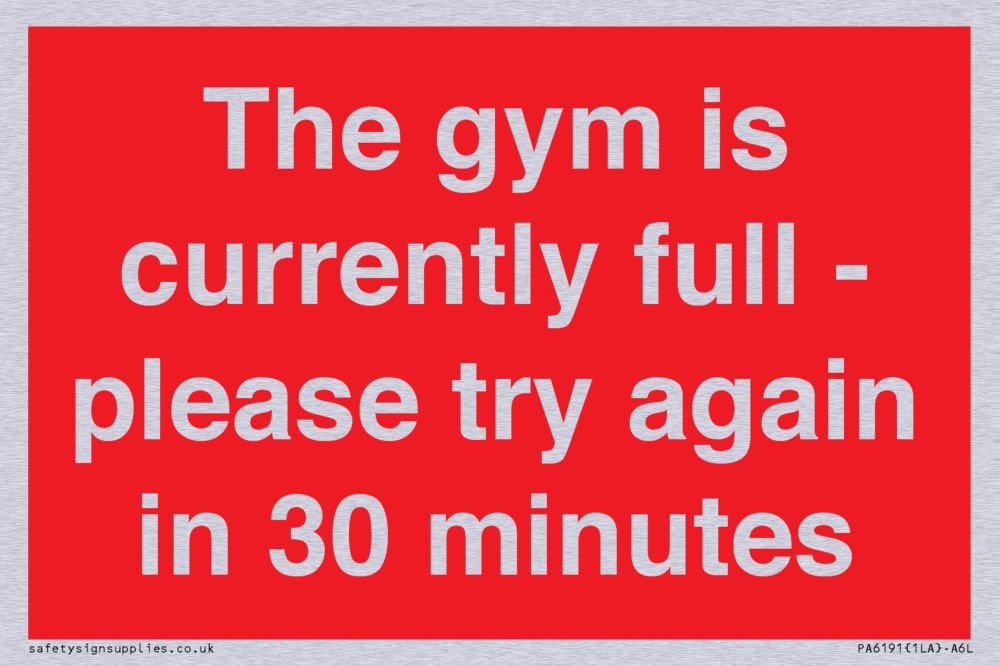Sign Text: The gym is currently full - please try again in 30 minutes