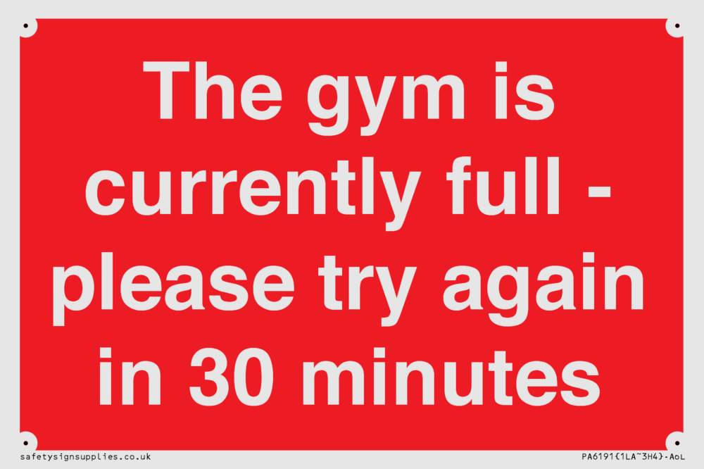 Sign Text: The gym is currently full - please try again in 30 minutes