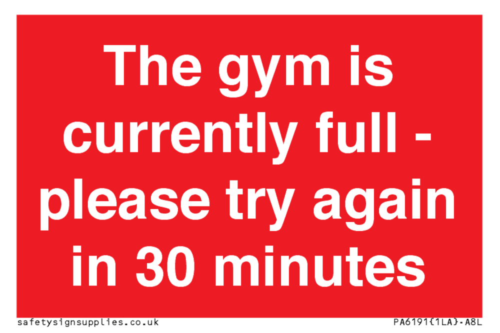 Sign Text: The gym is currently full - please try again in 30 minutes
