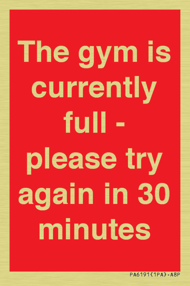 Sign Text: The gym is currently full - please try again in 30 minutes