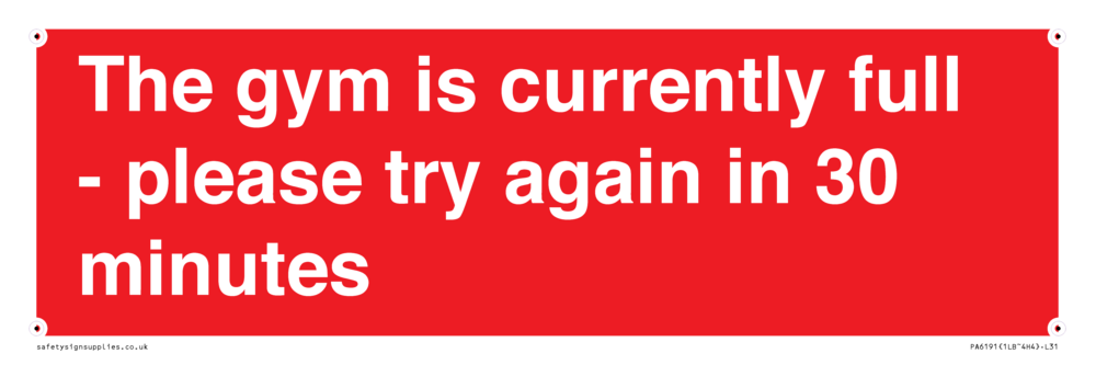 Sign Text: The gym is currently full - please try again in 30 minutes