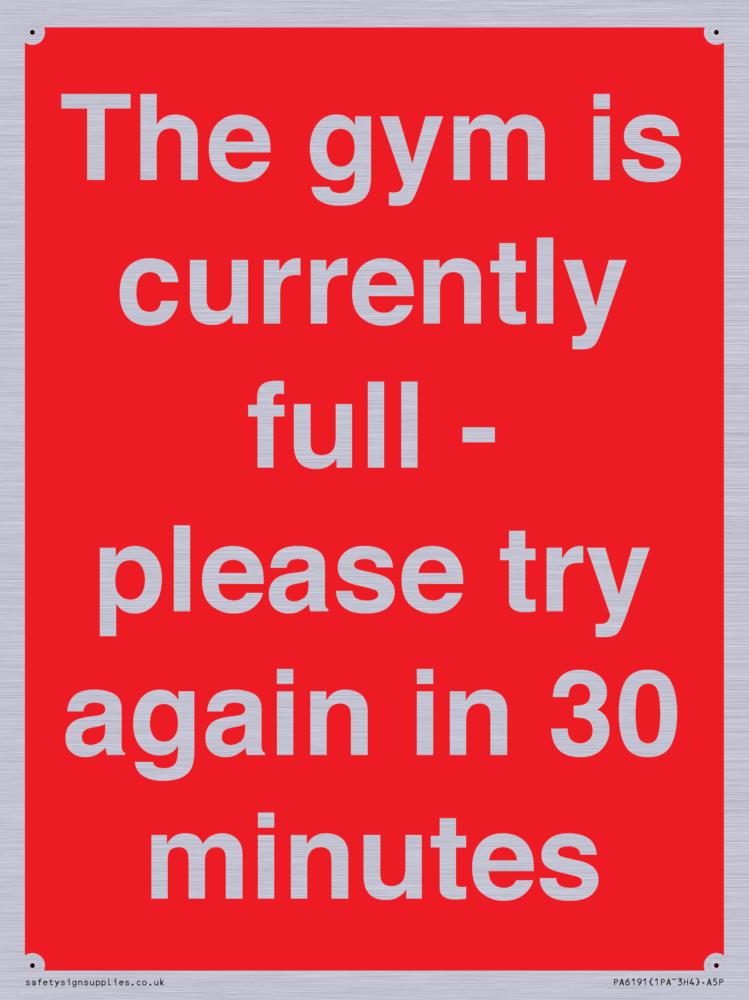 Sign Text: The gym is currently full - please try again in 30 minutes