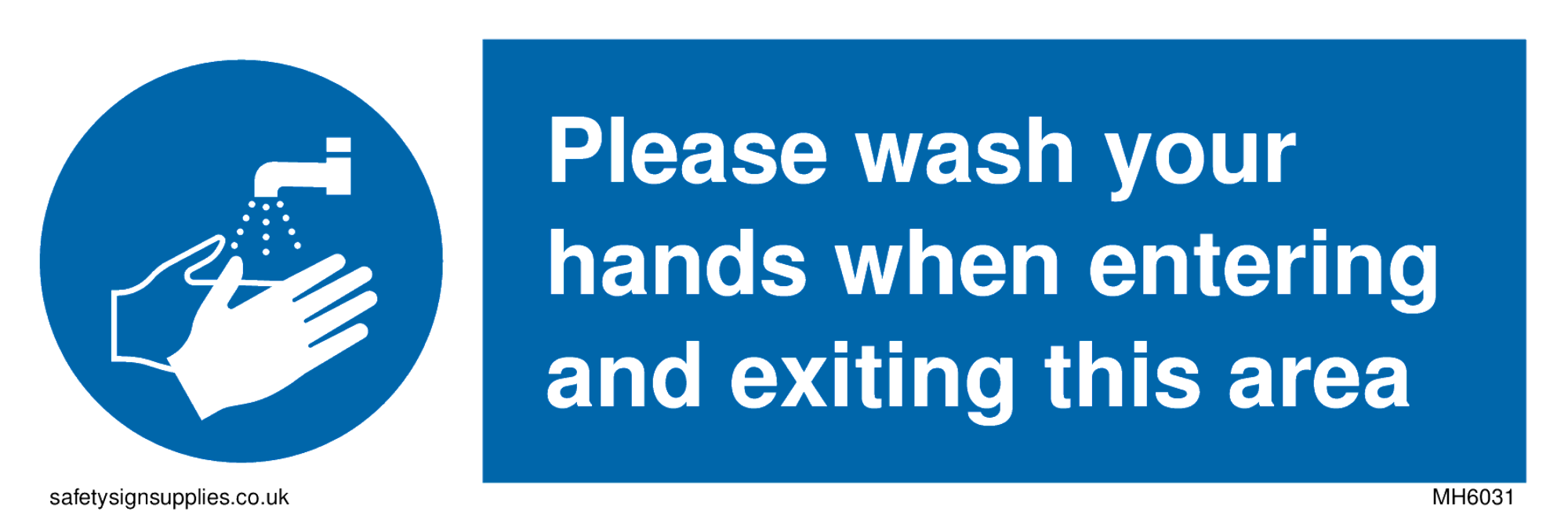 Please wash your hands when entering and exiting this area with hand washing symbol