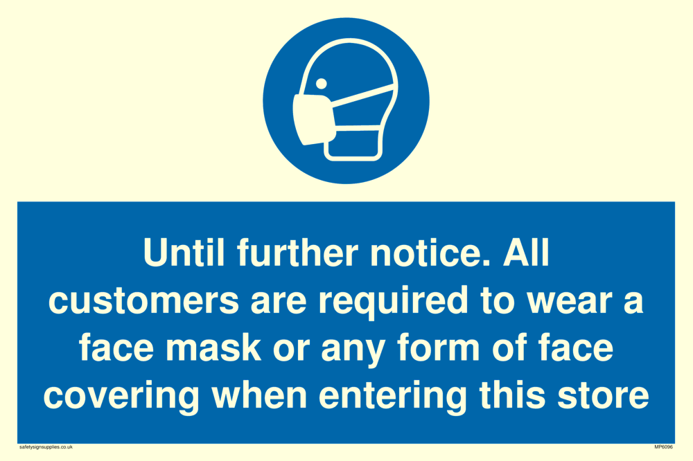 Until further notice. All customers are required to wear a face mask or any form of face covering when entering this store