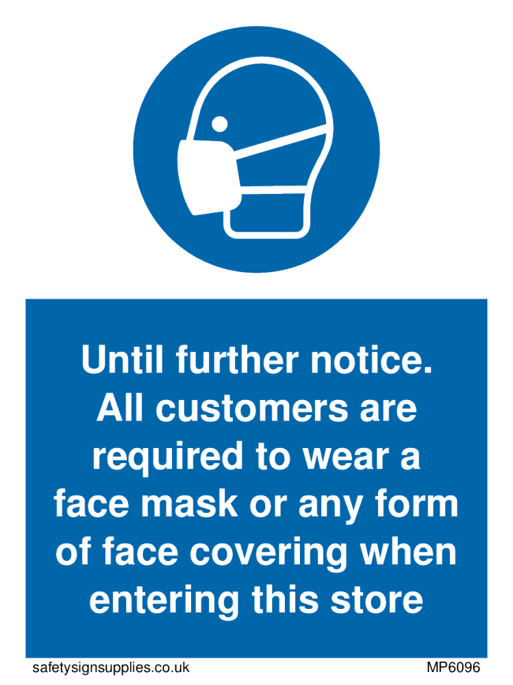 Until further notice. All customers are required to wear a face mask or any form of face covering when entering this store