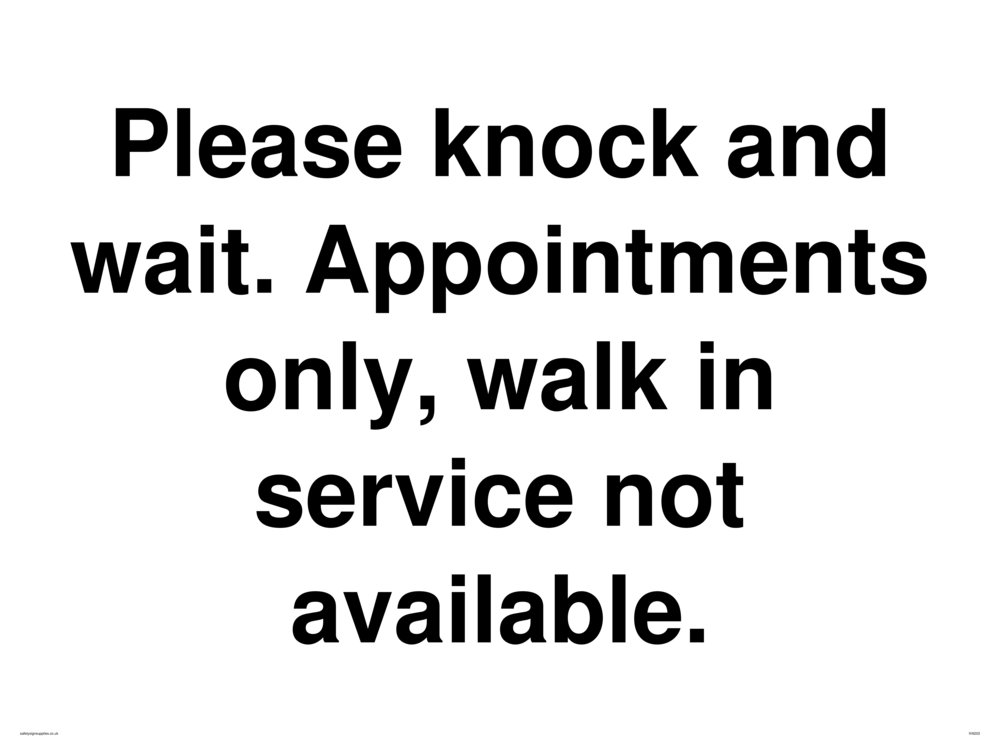 Please knock and wait. Appointments only, walk in service not available. Sign