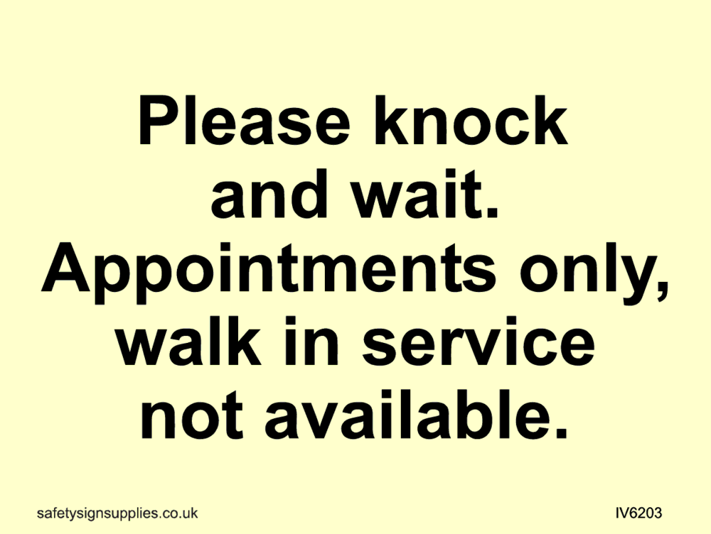 Please knock and wait. Appointments only, walk in service not available. Sign